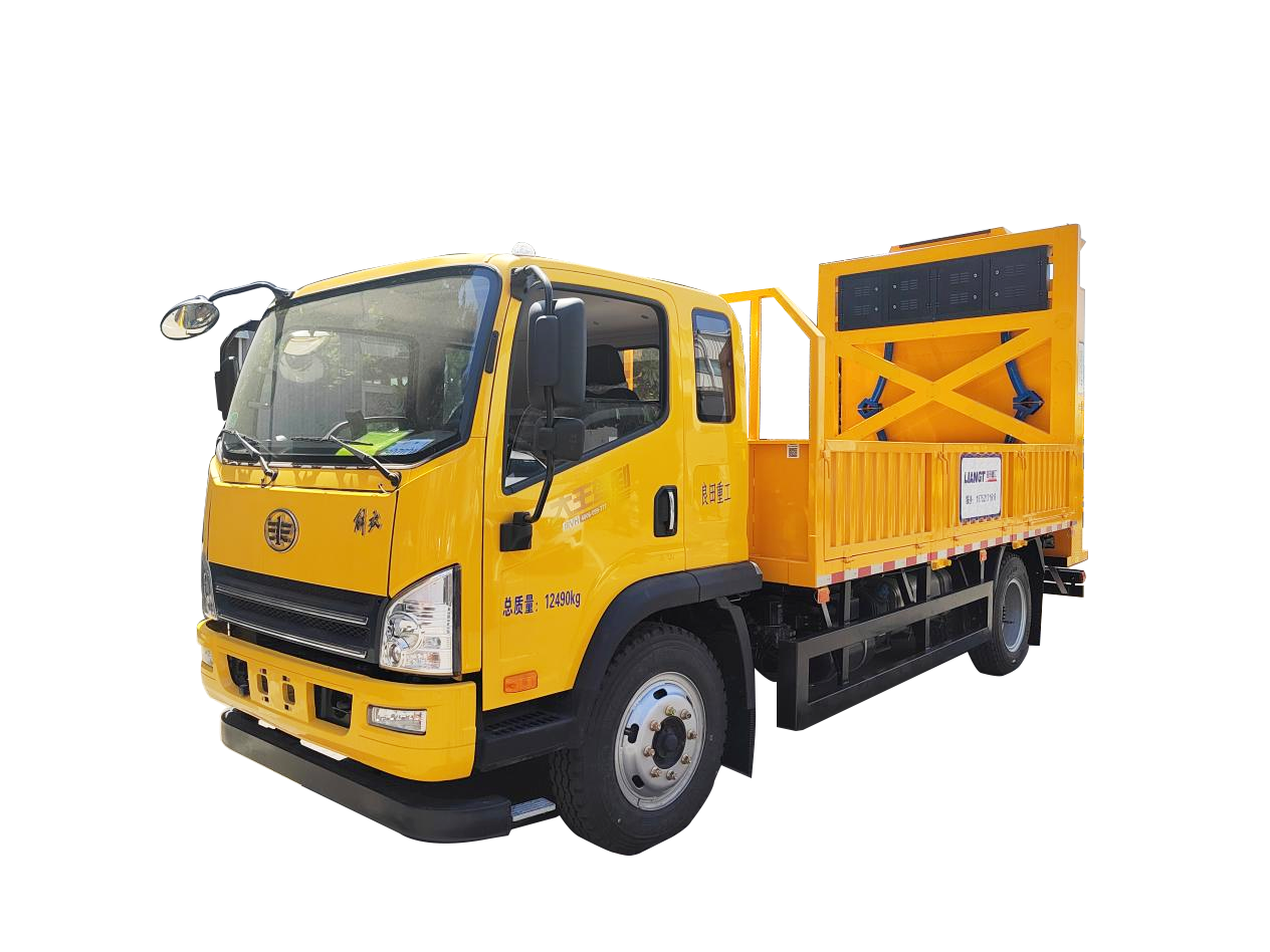 預警安全引導裝置,由LED情報板+高亮LED箭頭板+LED爆閃燈+警報器等組成,形成字幕提醒、聲光預警、燈光引導一體化的視聽安全系統,對后方和行車區車輛進行預警引導;